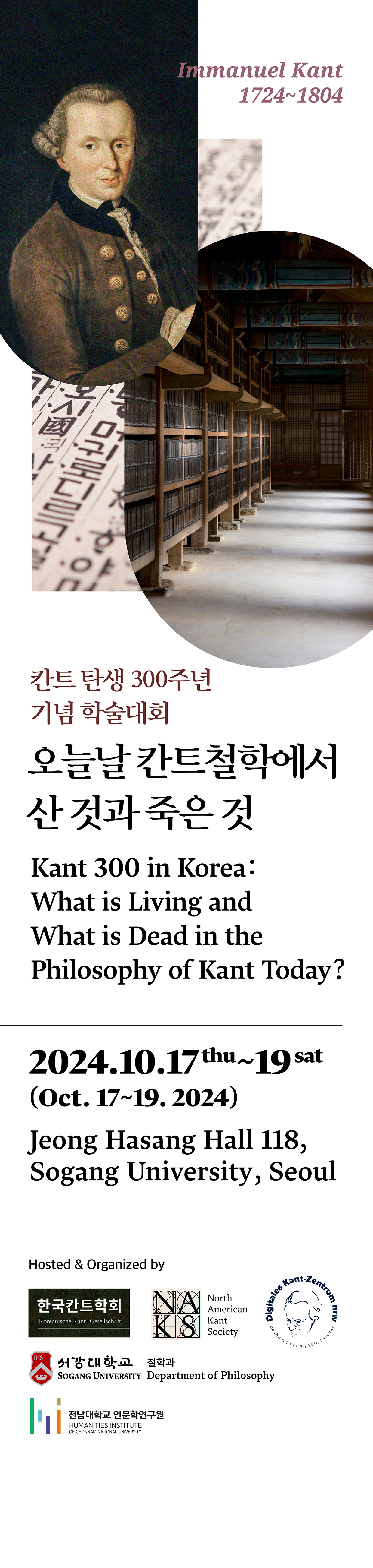 ◉ 주최 : 한국칸트학회 Korean Kant Society, 북미칸트학회 North American Kant Society, 독일디지털칸트연구센터 Digitales Kant-Zentrum NRW in Germany, 서강대학교 철학과 Department of Philosophy at Sogang University, 전남대학교 인문학연구원 Humanities Institute of Chonnam National University